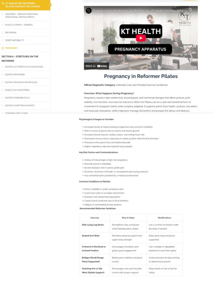 KT Reformer Pilates Curriculum